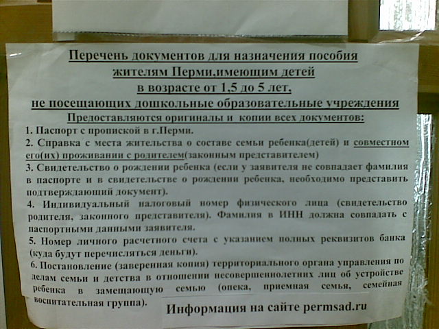 Копию свидетельства о рождении всех детей4. Копию лицевого счета сберегательной книжки либо пластиковой карты получателя компенсации с указанием реквизитов кредитного учреждения РФ. Законные представители опекаемых и приемных детей ребенка дополнительно к перечисленным документам представляют копии с одновременным предъявлением оригинала соответственно решения органа местного самоуправления об установлении опеки над ребенком, договора о передаче ребенка на воспитание в приемную семью.
